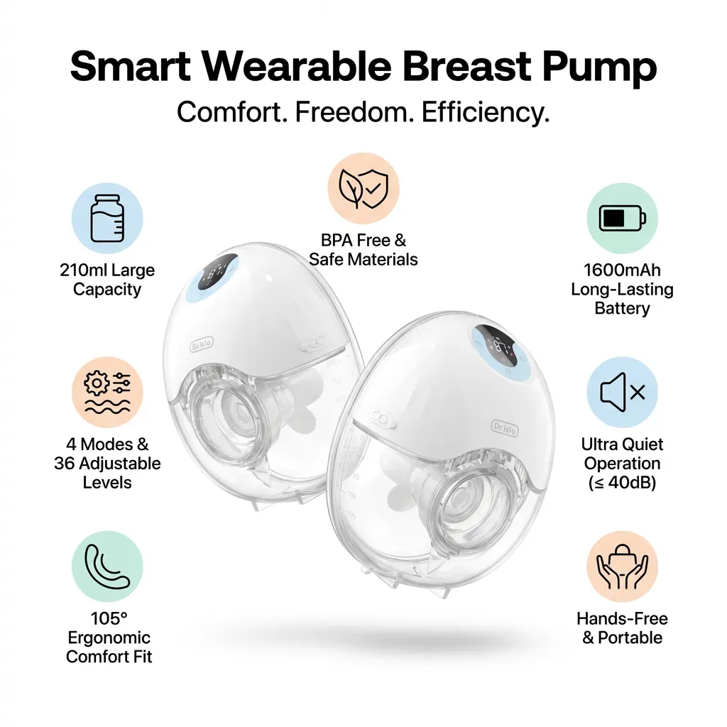 • Ultra-Quiet Performance: Operates at less than 40dB, ensuring total privacy and allowing you to pump even while your baby is sleeping nearby.